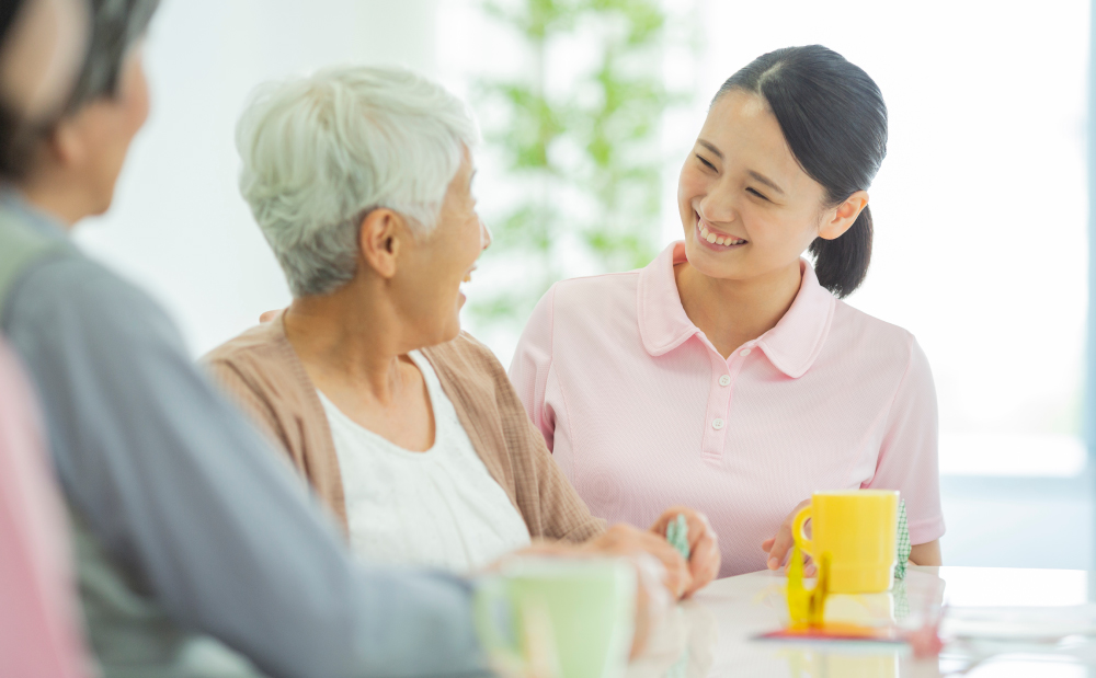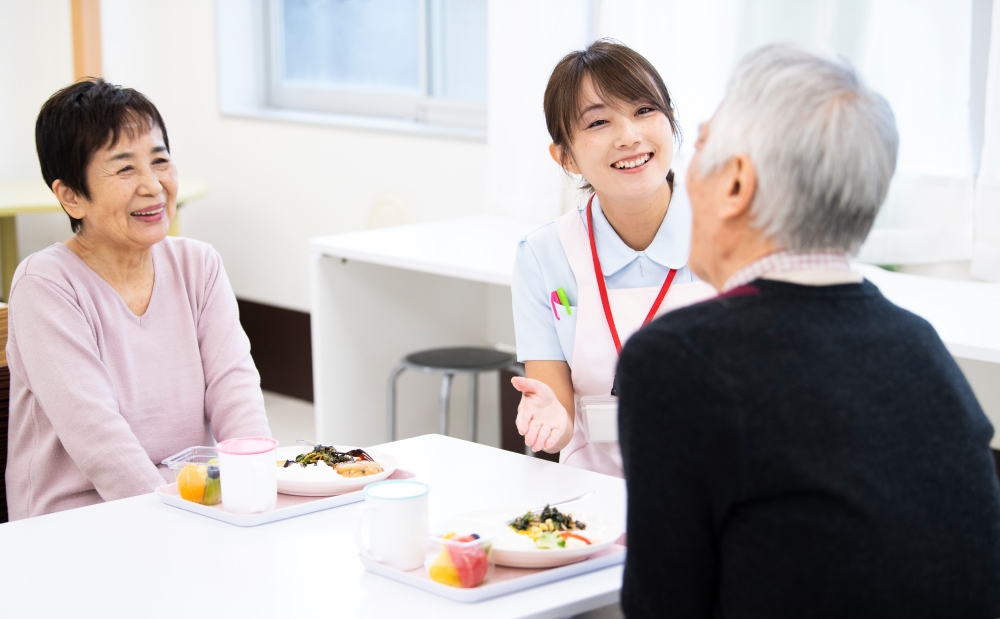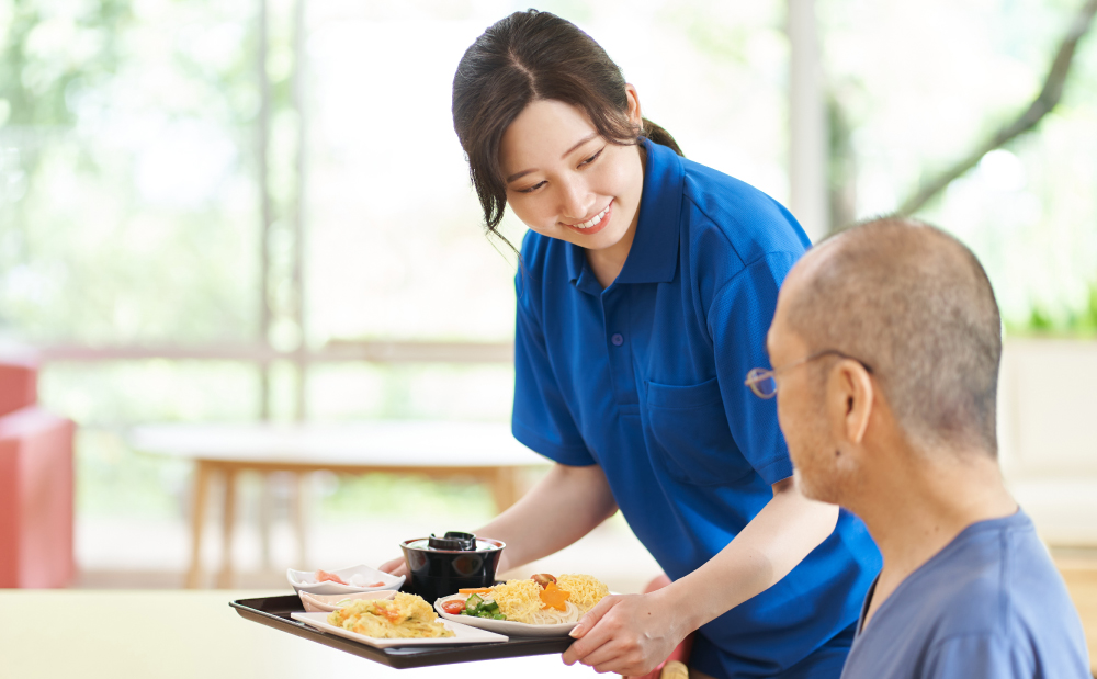利用者の状態に応じて、食事の配膳・介助、入浴や排泄の支援、身の回りの掃除など日常生活のサポートを行います。無資格・未経験でも丁寧に教えます。