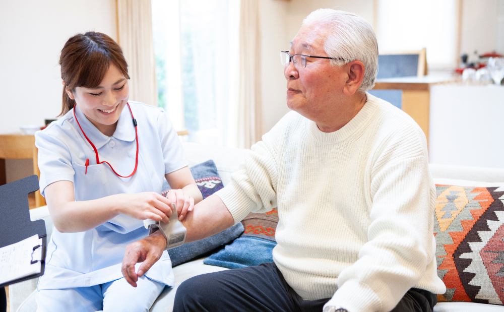 血圧や体温などのバイタル測定や、服薬の管理を行い、健康状態の変化に気づけるよう努めます。